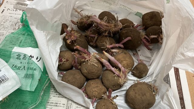 きういの日記 じゃがいも、種芋に芽が出てしまった。 2026年3月15日 きうい 「そろそろじゃがいもを植えようかなぁ」と思って、買い置きしてあった種芋を出してきてびっくり!芽が出てる。大きく育ってるのもある(*_*; お正月にホームセンターで買った『きた …