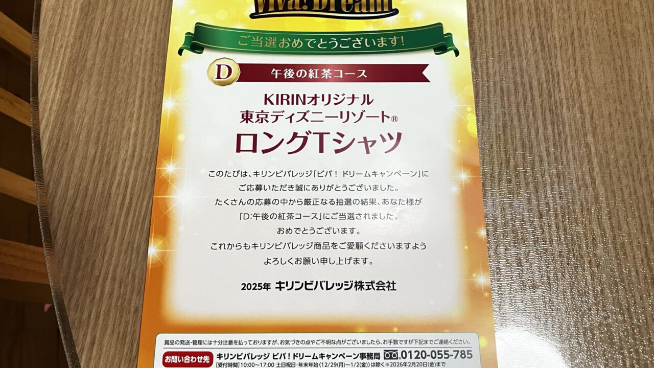 キリンビバレッジで「ディズニーTシャツ」に当選
