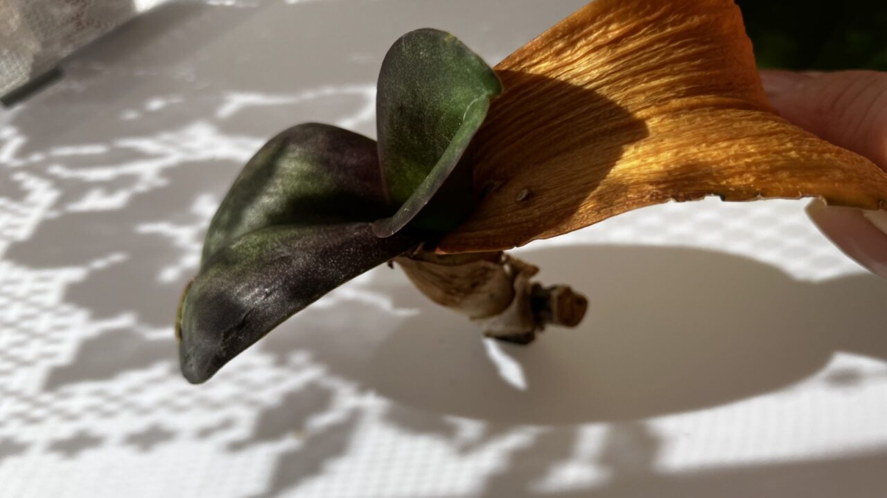 根腐れした株は古い葉の養分をもらって新しい葉が伸びてきた。根が出たら復活なんだけど・・・