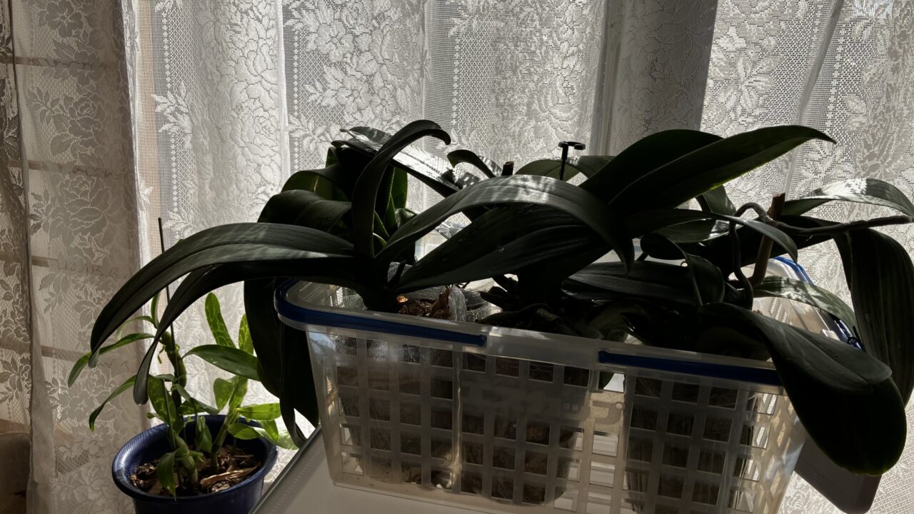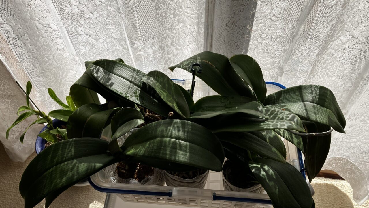 動けない中で一番の楽しみは胡蝶蘭のお世話。近くに置いて眺めてる。