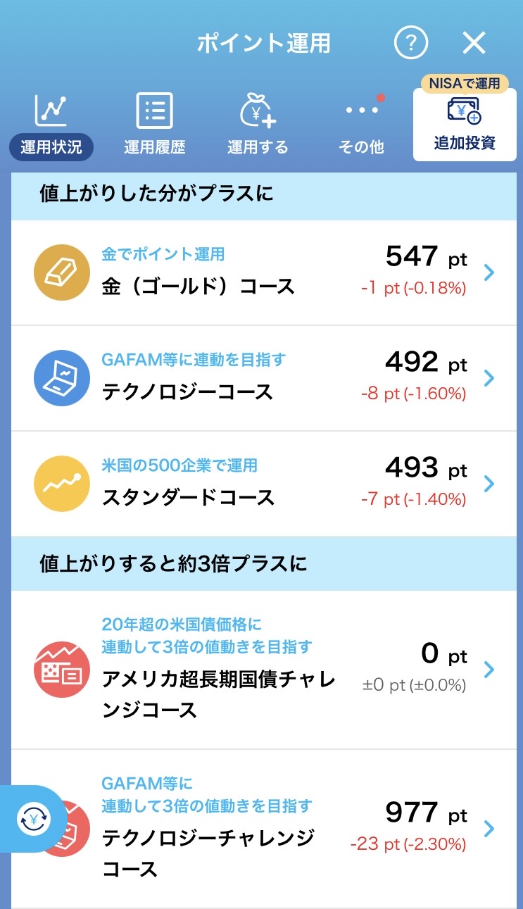 彼女はすでに運用してて「ポイントだから現金にならないけど支払いには使えるよ。」って。金に投資したら増えてるそう。