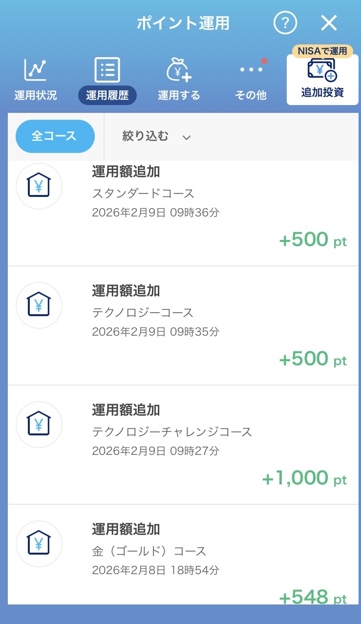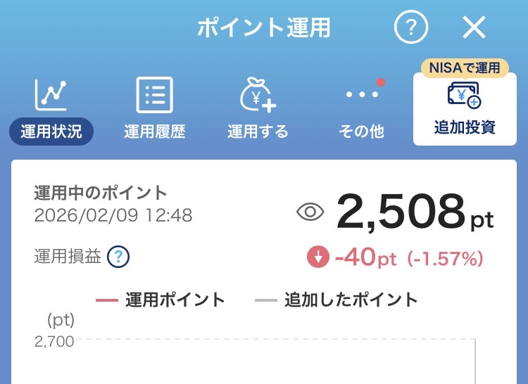 今後のポイント付与予定があるから貯まったら追加投資する。
