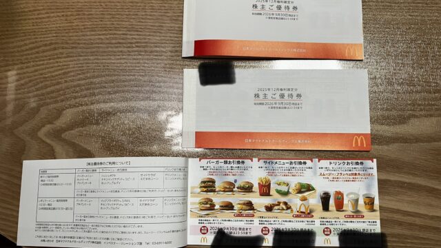 きういの日記 マクドナルドの株主優待券は嬉しい! 2026年4月1日 きうい 先週、12月決算の日本マクドナルドホールディングス(2702)から株主優待券が届いた。 優待目的で最初に買った100株は20年前。その2年後に200株買い足して今は300株。 …